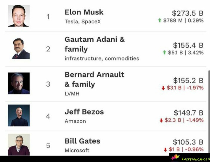 Indian Businessman Goutam Adani & Family cross AMAZON founder Jeff Bezos and LVMH founder Bernard Arnault & family